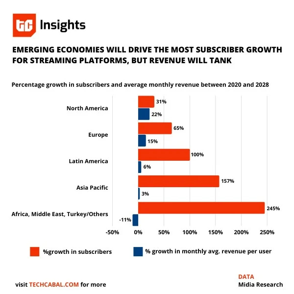 While these pricing plans are set inline with each country’s user spending power and population, it creates a new challenge to acquire a greater volume of subscribers in regions like SSA. For example, you’d have to acquire ~3.4 monthly subscribers in SSA 3 to generate the same monthly revenue as 1x American subscriber. Granted, the target population required to achieve that scale exists, but acquiring new subscribers in a developing market is likely to be a resource intensive operation. Basically, it’s a longer-term play.